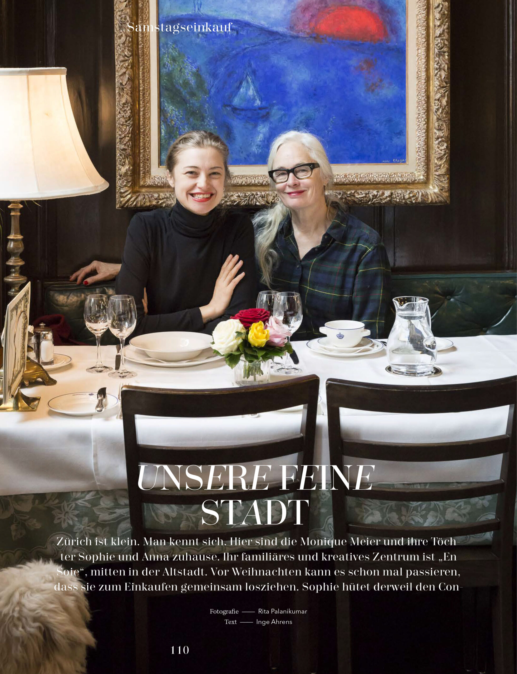 Monique and Anna Meyer from “ensoie” photographed at Kronenhalle in front of famous Marc Chagall painting for german magazine “Salon”.